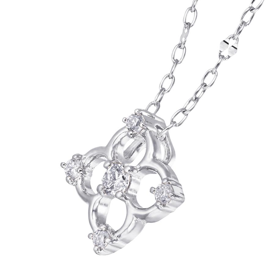 商品情報 教会にある尖塔の窓の上部に見られるトレーサリー(窓の格子模様)からデザインしたモチーフが主役のネックレス。 ちりばめられた5石のダイヤモンドとステップペタルチェーンの煌めきがデコルテを華やかに彩ってくれます。 地金素材:K10WG 使用宝石:ダイヤモンド 長さ:約40cm トップの大きさ(縦×横):約9×9mm |